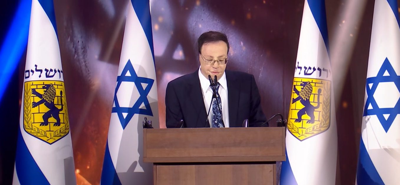"מדי שנה אנחנו ניצבים כאן, כשמעלינו העיר העתיקה, ובקרבתנו נמצאים כל הסמלים הכי משמעותיים של העם היהודי.ואנחנו מזכירים את גבורתם הבלתי נתפסת של אחינו ואחיותינו,של בנינו ובנותינו,של אבותינו ואימותינו.חלקם, כמו רב סמל מתקדם יוסי הרשקוביץ, מנהל התיכון הדתי "פלך בנים" פה בירושלים, גיבור במדים שמייד בבוקר שמחת תורה, כששמע שפרצה מלחמה, קפץ אל יחידת המילואים שלו.כמה ימים לפני שנפל בקרב השאיר יוסי למאות תלמידיו צוואה שבה קריאה לאחדות ישראל".