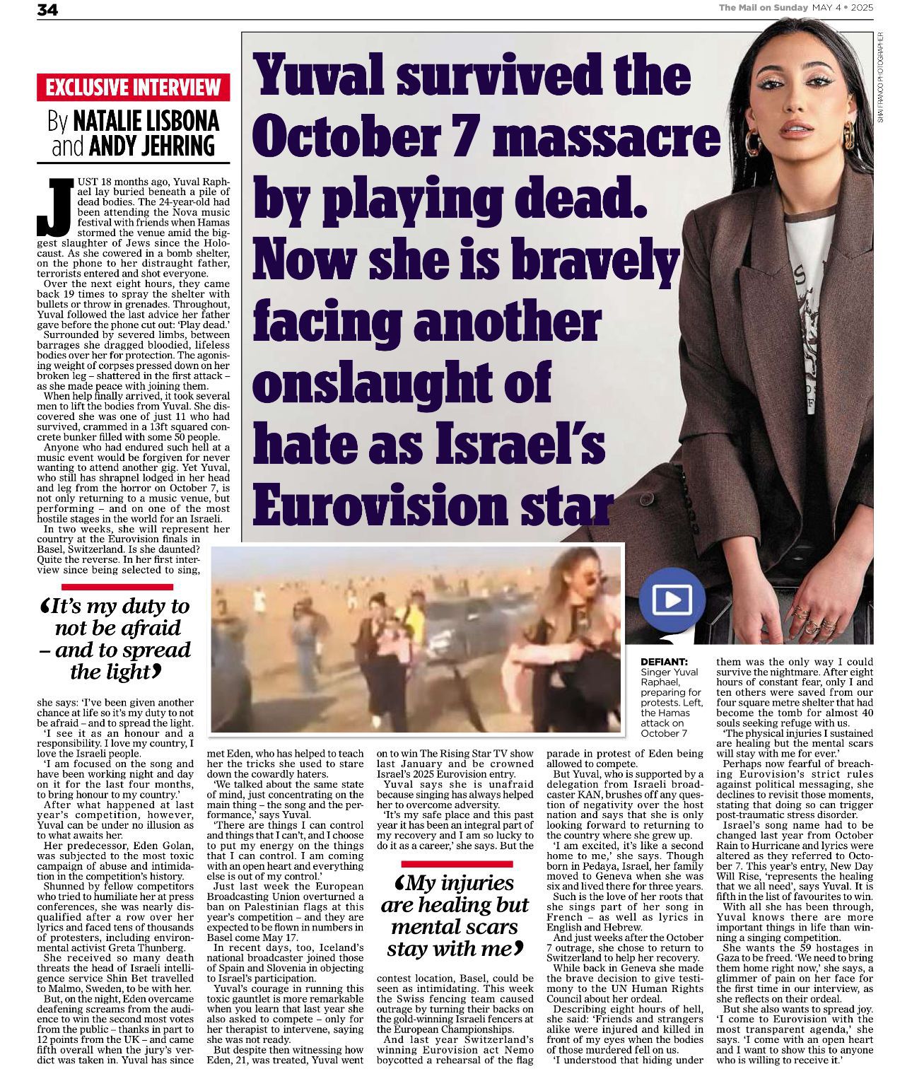הקהל הבינלאומי מתחיל להיחשף לסיפורה המדהים של יובל רפאל. נציגת ישראל לאירוויזיון 2025, שהדהימה מדינה שלימה בסיפור ההישרדות שלה, אומץ ליבה וקולה – מתחילה לקבל הכרה בעולם. היא התראיינה ל-Daily Mail (דיילי מייל) הבריטי, ונראה שגם הם לא יכלו שלא להתפעל ממנה.