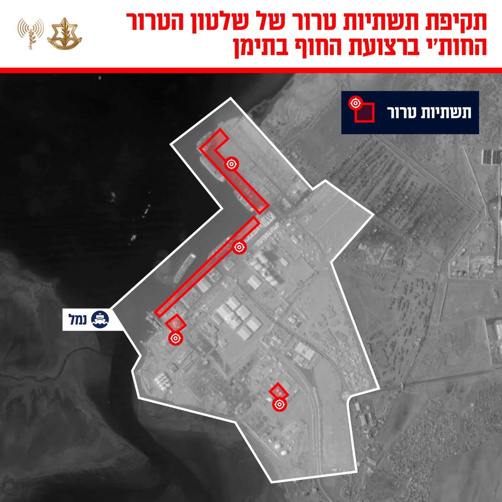 אמש, זמן קצר לאחר התקיפה, לקח דובר צה"ל אחריות על התקיפה והודיע כי התקיפה כוונה לעבר תשתיות טרור של החות'ים בנמל הימי חודיידה ובאזורים הסמוכים, כ-2,000 ק"מ מגבולות ישראל. מדובר בנמל אסטרטגי המשמש את החות'ים כמוקד הכנסה משמעותי וכמרכז לייבוא אמל"ח מאיראן.