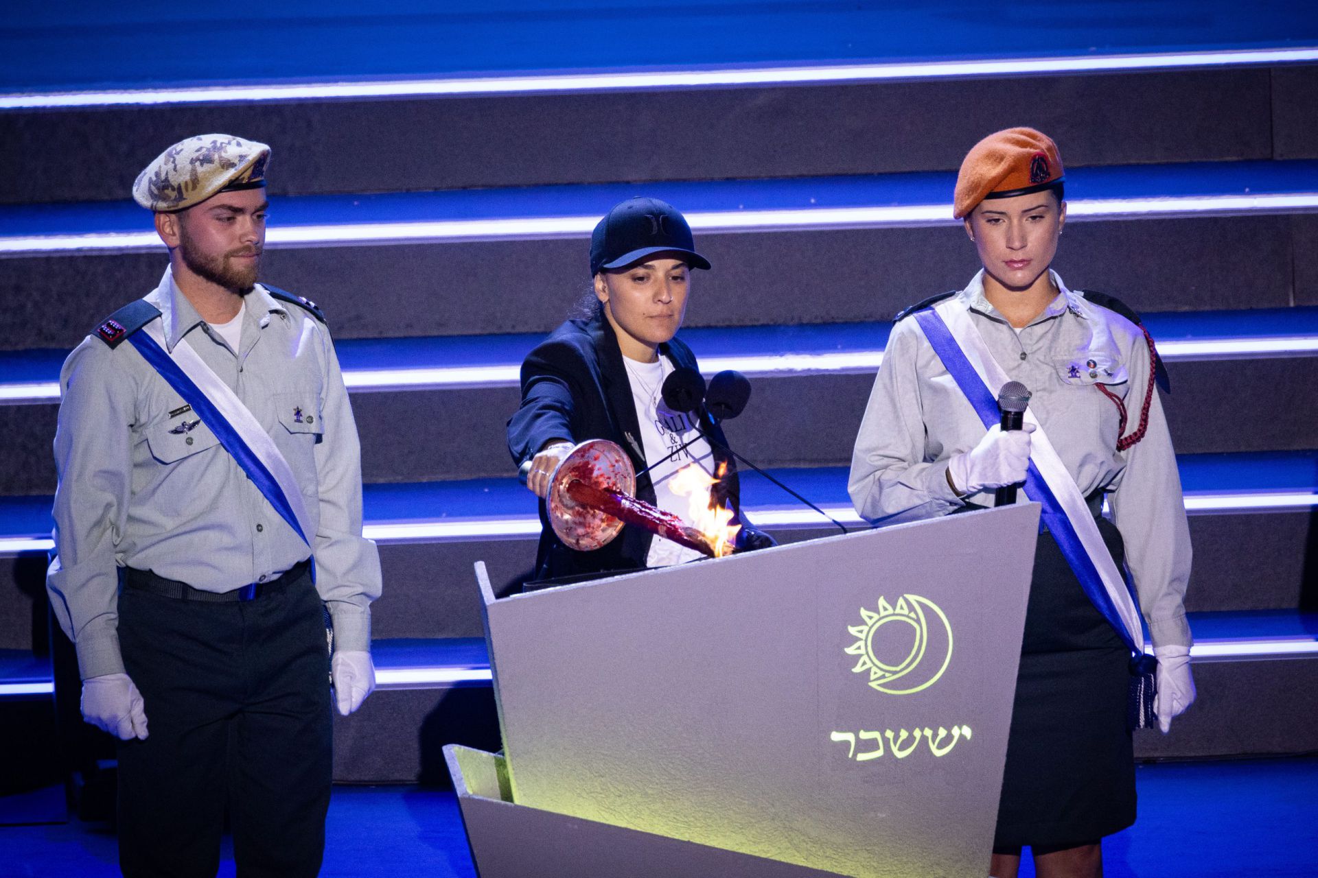 אמילי דמארי בטקס הדלקת המשואות (צילום: יונתן סינדל, פלאש90)
