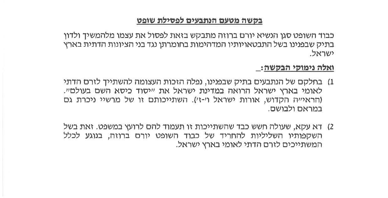 העמוד הראשון של בקשת הפסילה