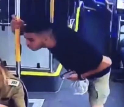 הצעיר הערבי יורק על קצינה באוטובוס (צילום: מצלמת אבטחה)