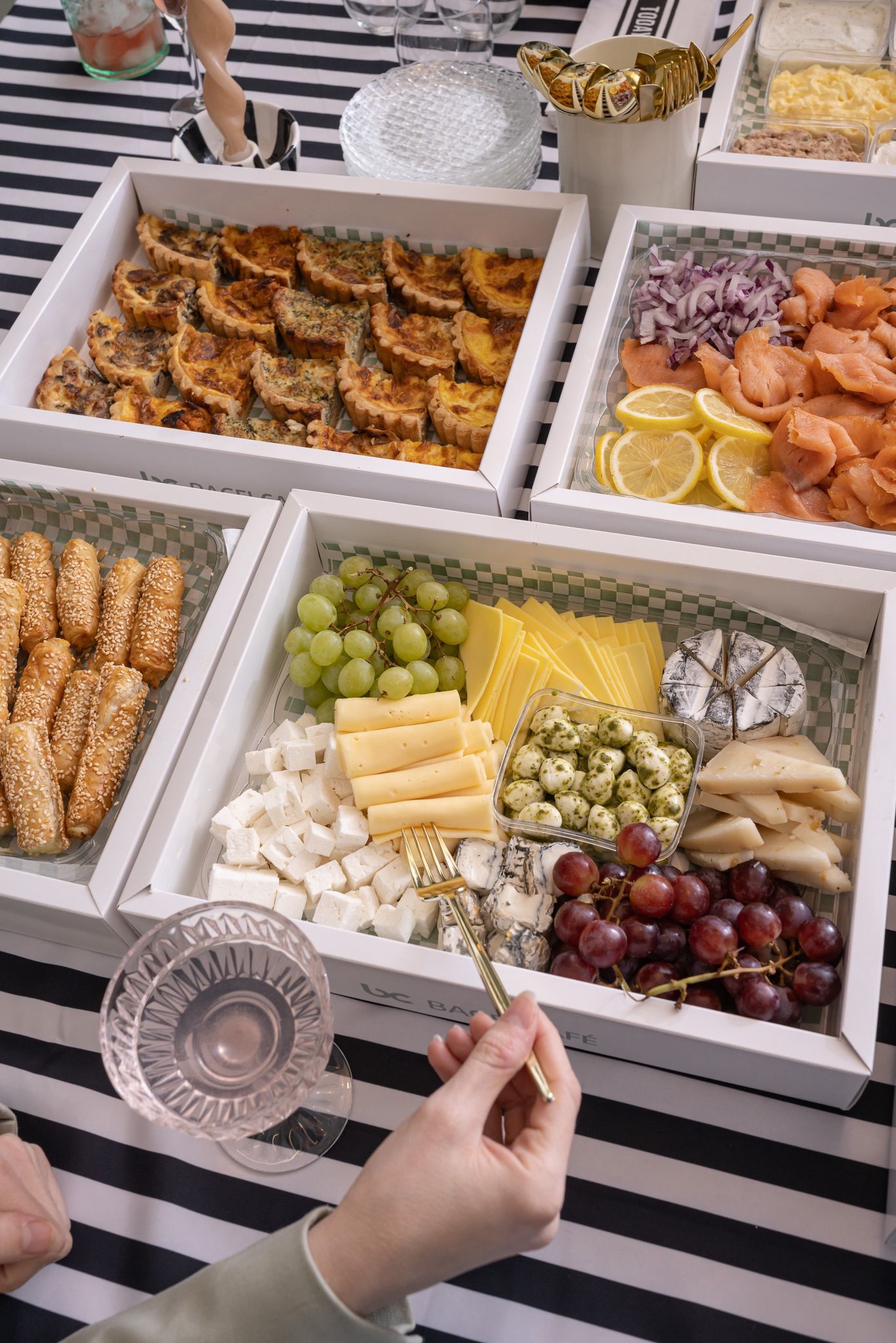 פלטת גבינות קשות – צהובה, בולגרית, כדורי מוצרלה, מגוון גבינות קשות מובחרות בליווי פירות העונה מחיר 349, פלטת פירות – מגוון פירות העונה – 299 ₪ – פלטות כריכי בייגל במילויים מגוונים (טונה, ביצים, אבוקדו גבינת שמנת) כריכי סלמון, חצאי בייגל במילוי גבינות ועוד.