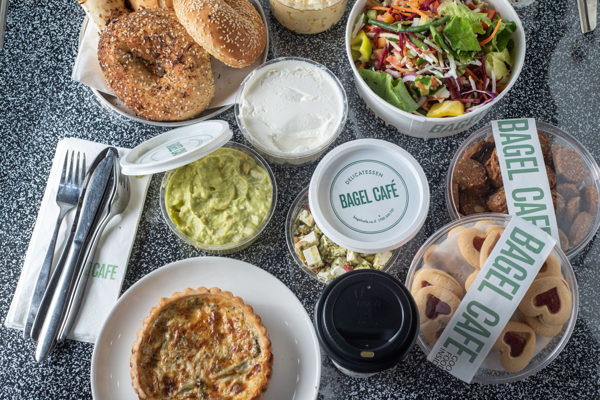 סלטים ל-20 איש – סלט יווני, ירוק, קינואה, קראנץ', סביח ישראלי, פלטות קינוחים – מאפינס, מיני רוגעלך עוגות פאי ועוד. רשת "בייגל קפה", רשת הבייגל הגדולה והמובילה בישראל, כוללת 11 סניפים ונמצאת במגמת התרחבות מרשימה. הרשת מבוססת על הבייגל האמריקאי האהוב, ומציעה שילוב ייחודי של מסורת אמריקאית ותרבות ישראלית.
