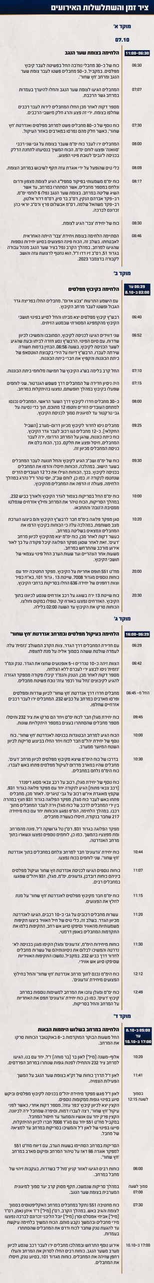 ציר הזמנים והמוקדים כפי שגובש ונבחן על ידי צוות התחקיר
