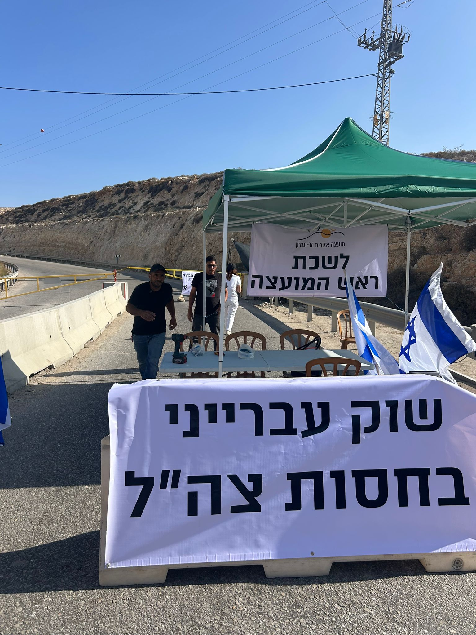 הבוקר (חמישי) הקים ראש המועצה האזורית הר חברון, אלירם אזולאי, את לשכתו בכניסה לשוק הפיראטי הסמוך למיתר. יחד עם תושבים רבים, חסם אזולאי את הכניסה למתחם ולא איפשר את פעילותו.