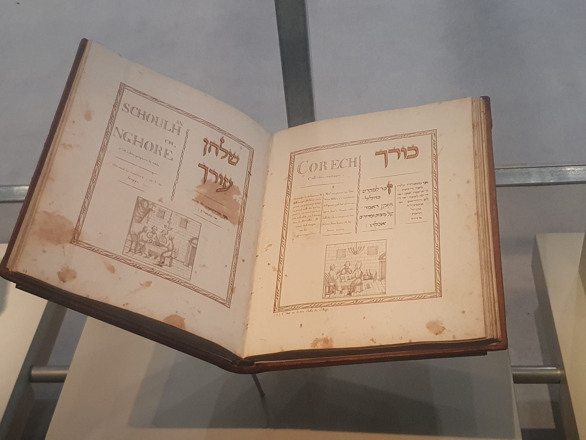 מצד שני עומדת הגדה של הפסח בת 300 שנה ובה חורים של תולעים ועש וכתמי יין שנשפך במהלך ליל הסדר. המשמר מתלבט האם לנקות את כתמי היין כדי "לתקן" את המוצג או לשמור על האותנטיות שלו כשהכתמים הם חלק מההגדה (כפי שיש לכם בבתים).