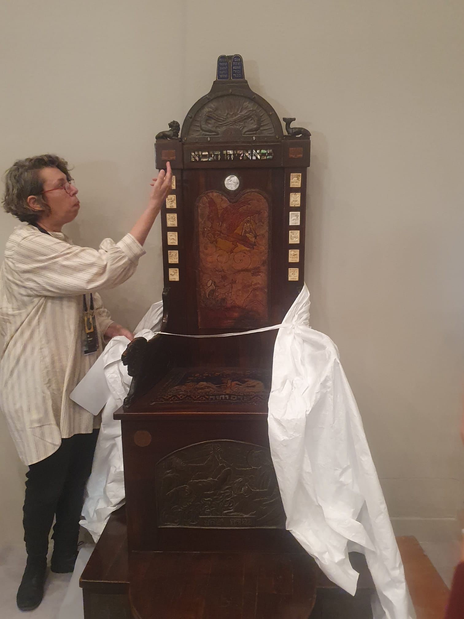 בתוך חדר העבודה של המשמרים מונח "כסא של אליהו" משנת 1910 – ימי תחילת בית הספר לאמנות 'בצלאל'. אחרי 115 שנה הכיסא כבר מתפרק, ועבודת השימור דורשת מומחיות מיוחדת משום שהכיסא מורכב מעץ, מעור מעיוטרים של קרן וגם מצדפים. זהו למעשה המוצג הראשון שמהווה אתגר לשימור משלל חומרים, כשהחומרים החדשים בהם יתוקן הכיסא צריכים לשמור על האותנטיות שלו ולהשתמש כנראה בדרכי עיבוד ישנות יותר.