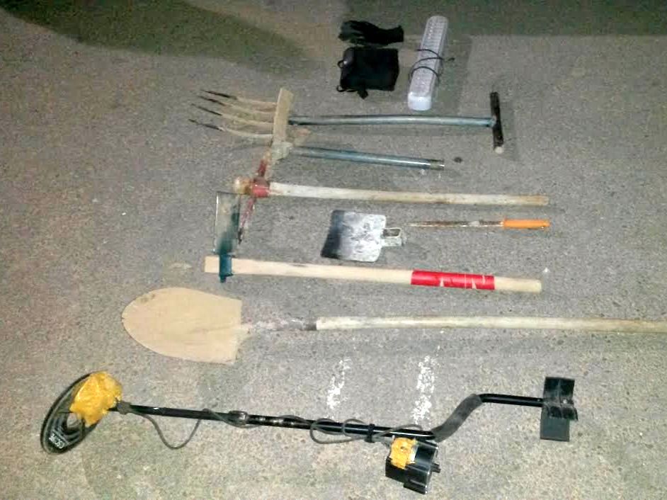 החשודים נתפסו כשברשותם גלאי מתכות וכלי חפירה. בחיפוש בכלי הרכב שלהם נמצאו מטבעות מהתקופה הרומית והביזנטית. החשודים טוענים להגנתם שיצאו לטייל, ואינם קשורים לחפירות השוד.