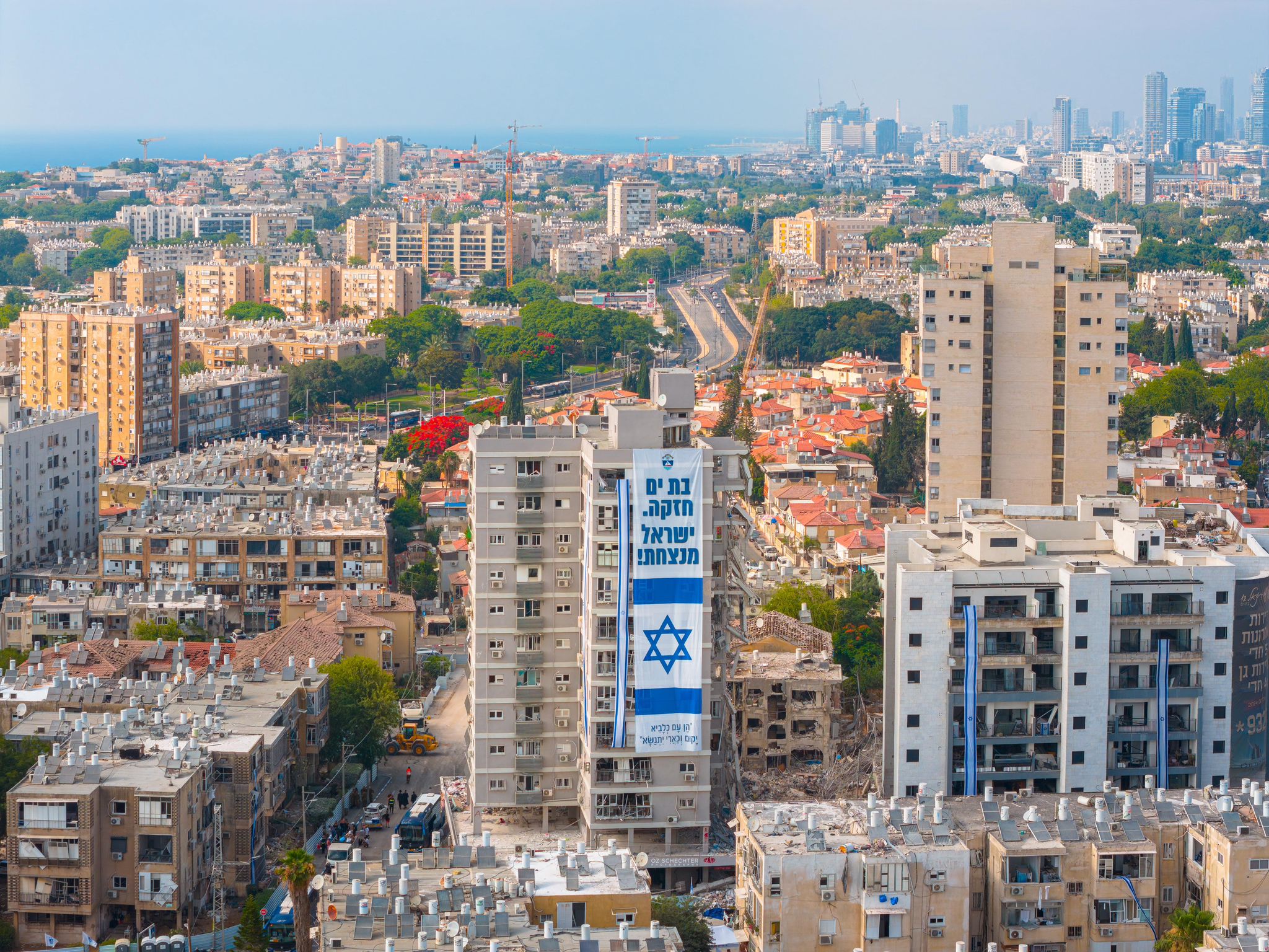 בעיצומו של מאמץ השיקום בזירת הפגיעה מהטיל האיראני בבת-ים, החלה עיריית בת-ים לתלות דגלים לאומיים עם המסר: "בת-ים חזקה. ישראל מנצחת". הדגלים נתלו על הבניינים שניזוקו, על המבנה שספג את הפגיעה הישירה מהטיל האיראני, וכן ברחבי הזירה שבה התרחש האסון.