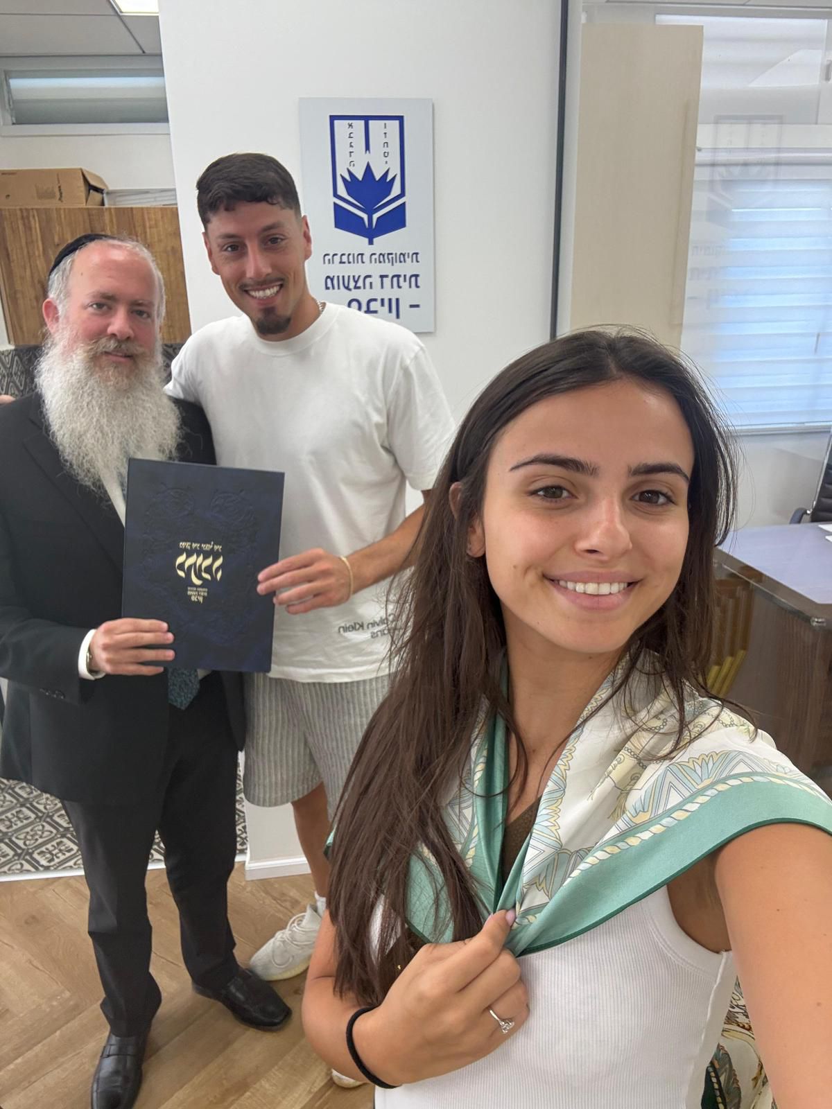 הזוג הצעיר עתיד להתחתן בעוד כשבוע, בתאריך ה-10 ביולי. אחרי שחגיגת החינה שלהם נדחתה בעקבות פתיחת מבצע "עם כלביא", הם בטח נושמים לרווחה על כך שחתונתם מתקיימת במועדה המקורי. יש לציין שאף אירוע החינה של השניים לא עבר חלק: הטיל ששוגר מתימן ביום שלישי האחרון עצר את חגיגות החינה, אך אלו התחדשו מייד לאחר כן.
