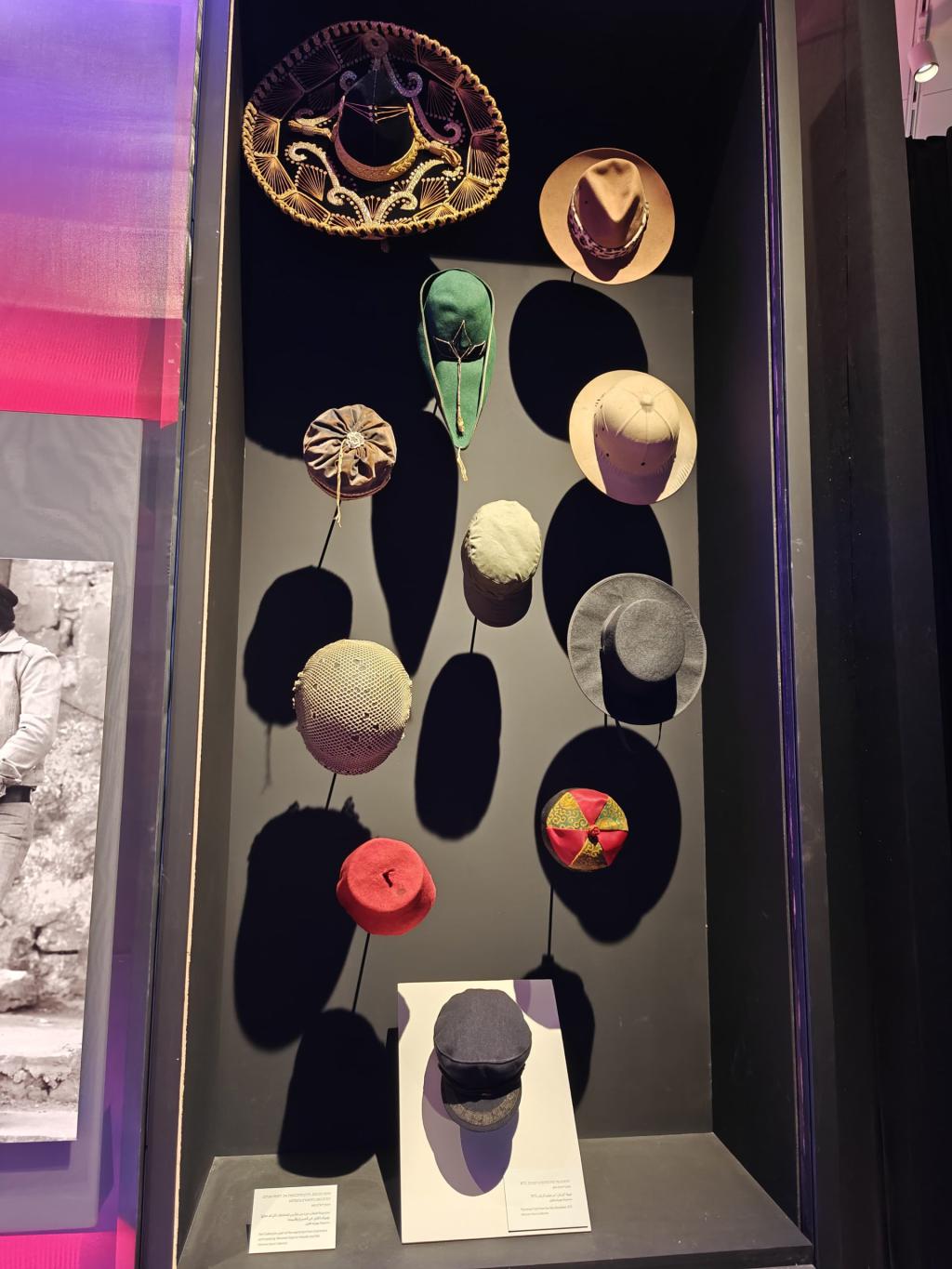 אוסף הכובעים מהתפקידים השונים של יהורם גאון לאורך השנים (צילום: עיריית ירושלים)