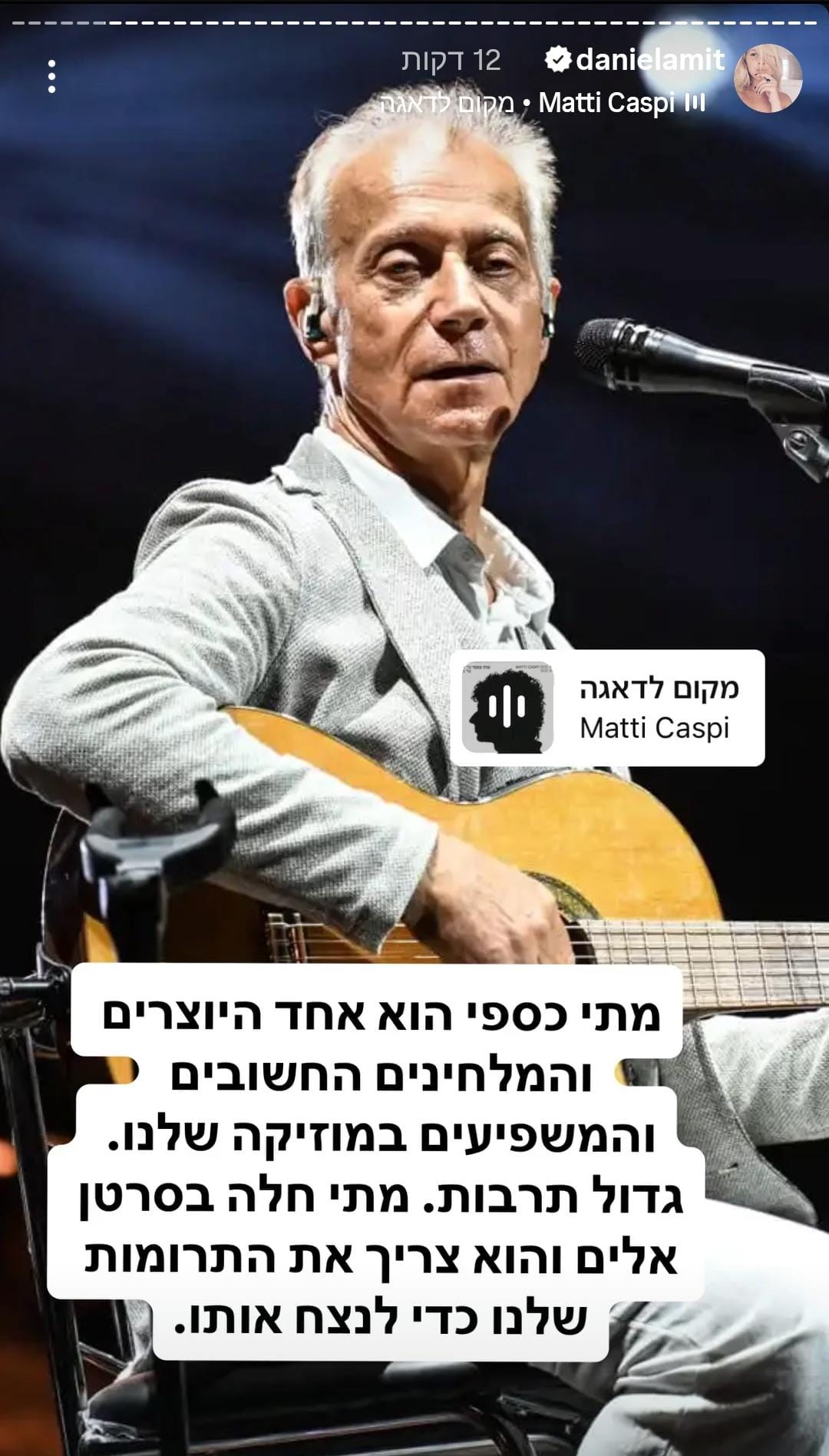 "תמיד דאגתי לתת את כל כולי ליצירה ולקהל שלי", מזכיר. "תמיד היה חשוב לי להיות בצד הנותן, לעשות למען האחר". הוא מוסיף, "אבל היום אני מרגיש דאגה עמוקה למה שיקרה איתי. כל מה שאני רוצה הוא להמשיך לחיות, ליצור, לכתוב, לשיר ולהמשיך להיות כאן".