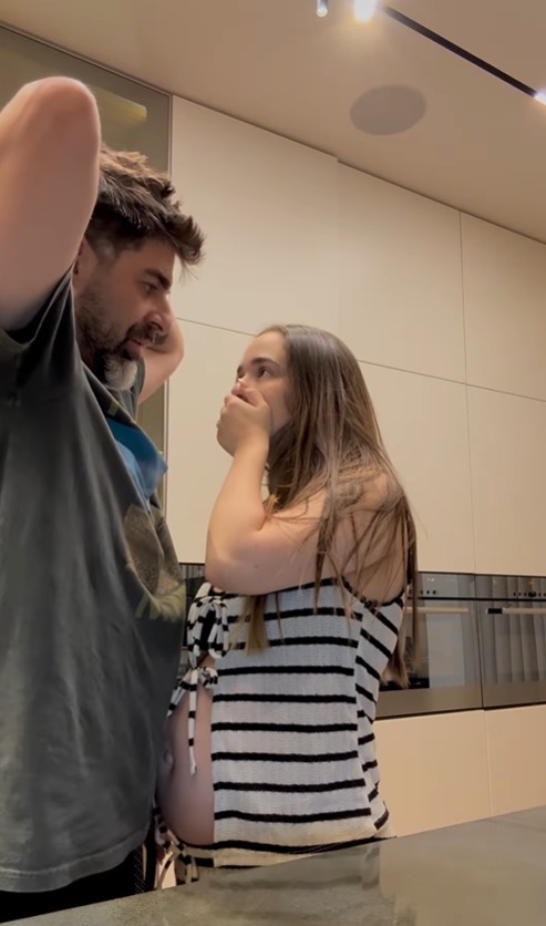 בסרטון ניתן לראות את הזוג ממתינים לתוצאת בדיקת ההיריון במתח רב. הם לחוצים ותוהים לעצמם מה יעשו אם הבדיקה חיובית. "להתרכז קצת בלביא", הם אומרים. כשהם "מגלים" לכאורה את תוצאות הבדיקה הם המומים ומחזיקים את הראש בידיים. זה הרגע בו בטנה של אשתו נחשפת, גדולה והיריונית.