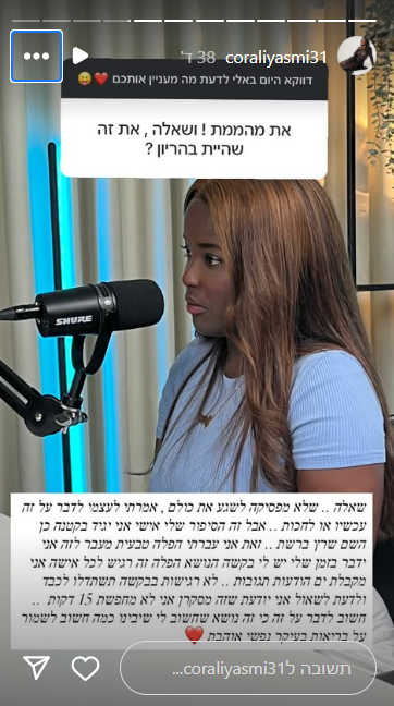 קורלי הדגישה את הרגישות של הנושא. היא ביקשה: "יש לי בקשה, הנושא של הפלה זה רגיש לכל אישה. אני מקבלת ים הודעות, תגובות לא רגישות. בבקשה תשתדלו לכבד ולדעת לשאול. אני יודעת שזה מסקרן, אני לא מחפשת 15 דקות תהילה". היא הוסיפה כי חשוב לה לדבר על הנושא כדי להעלות מודעות לחשיבות הבריאות הנפשית, במיוחד במצבים רגישים כמו זה.