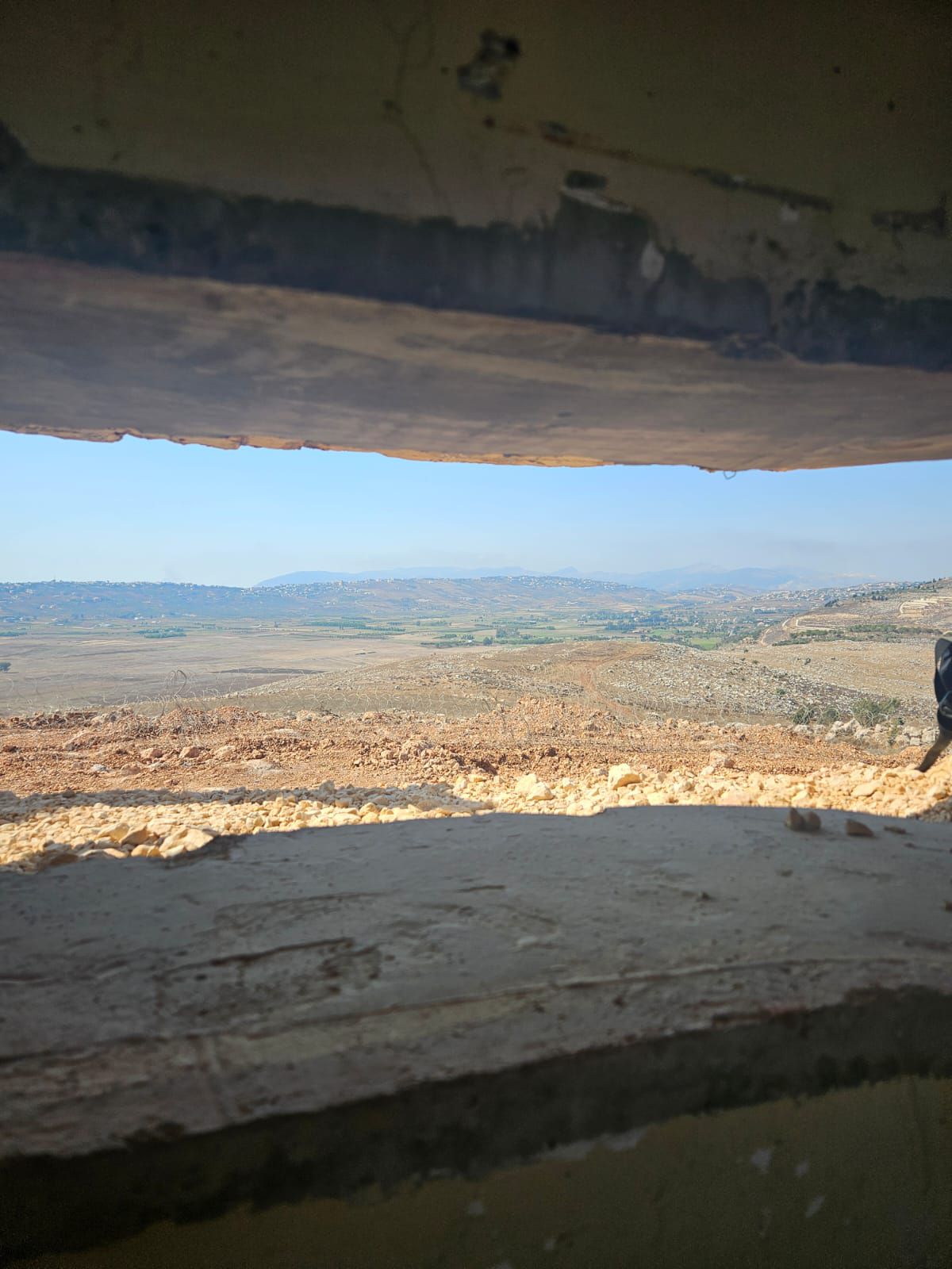 כשעומדים בתוך תעלות של מוצב חממיס בעומק שטח לבנון ומתבוננים צפונה רואים מסביב רק הרים חשופים. כך גם במבט מזרחה ומערבה. דגלי חיזבאללה לא נראים כאן יותר. מאחורינו המושבה מטולה.