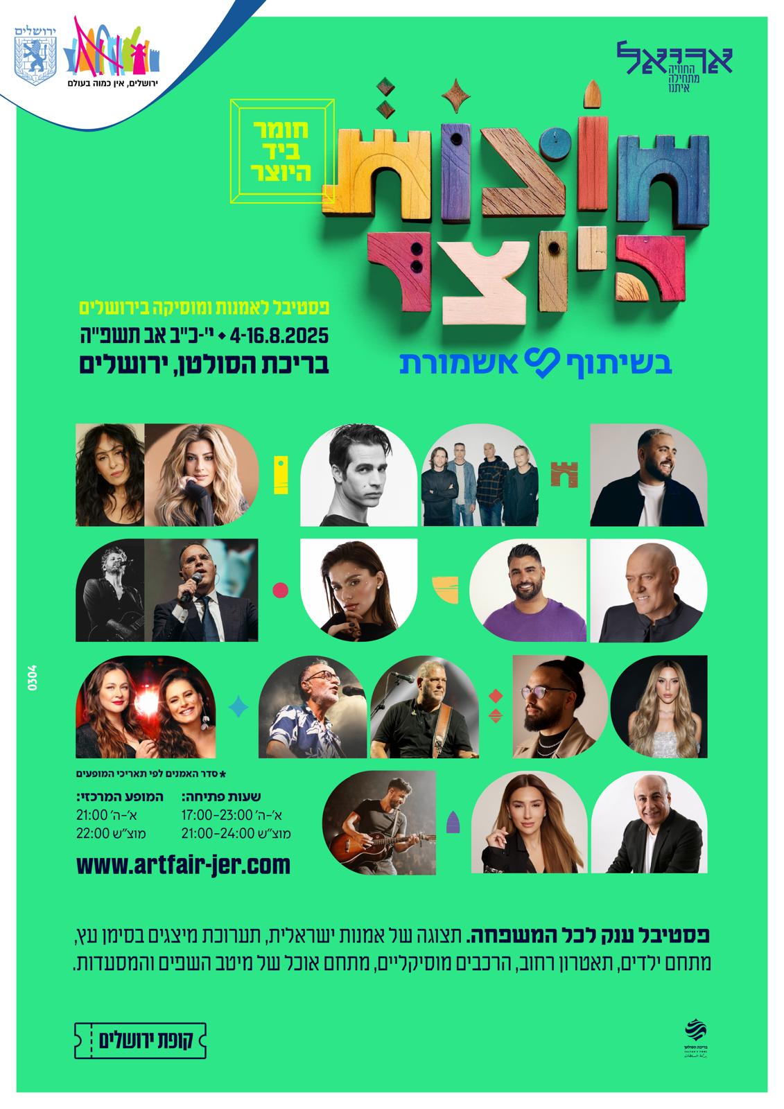 פסטיבל חוצות היוצר 2025, בסימן "כחומר ביד היוצר", יתקיים זו השנה ה-49 ויציג את חומר הגלם עץ כמקור השראה. היריד יכלול דוכני אמנות, תערוכת מייצבים, סדנאות יצירה למשפחות והופעות של אמנים מובילים כמו אביב גפן, שרית חדד, שלומי שבת וקרן פלס. חוויה תרבותית עשירה המשלבת אמנות, מוזיקה וקולינריה.