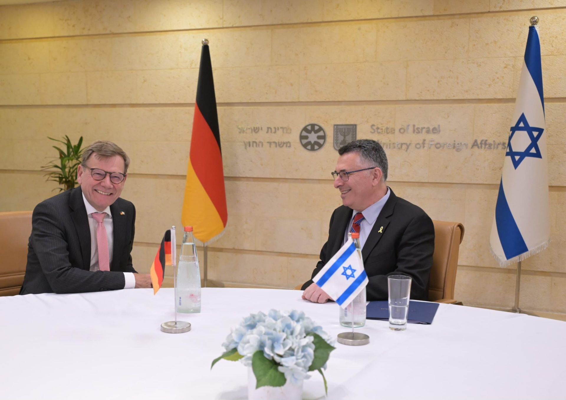 הערב (חמישי) לפני זמן קצר שר החוץ גדעון סער ושר החוץ של גרמניה יוהאן ודפול נפגשו במשרד החוץ בירושלים לאחר הודעת גרמניה כי תכיר במדינה פלסטינית. תחילה קייימו פגישה אישית ולאחר מכן פגישה מורחבת בהשתתפות הצוותים הבילטרליים.