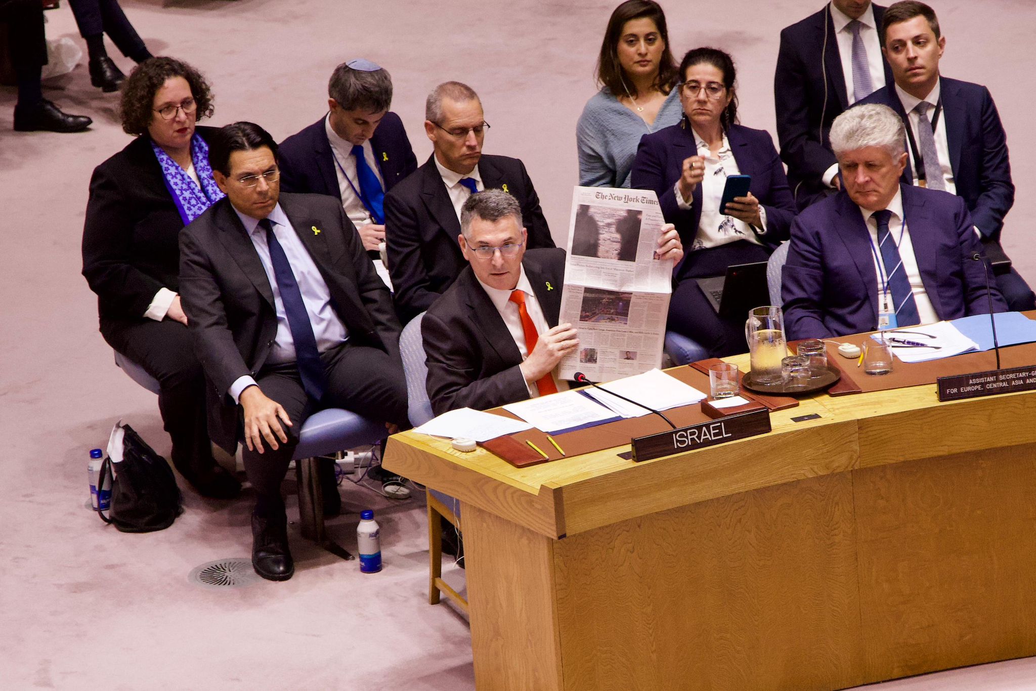 סער המשיך ותקף את האו"ם על הטייתו נגד ישראל: "אנחנו עדים לעולם הפוך. אנחנו עדים לאג’נדה המעוותת נגד ישראל של חלקים גדולים מהתקשורת העולמית. שוב ושוב הם מזיזים את האחריות: מהחוטפים והאנסים – למדינה שהותקפה. הם מעבירים את האשמה מהמחבלים – לקורבנות. במקום לעמוד לצד ישראל – אתם מאשימים את הקורבנות. הקורבנות של מתקפה משבע חזיתות שונות. אני שואל כאן, במועצת הביטחון של האו”ם: האם אתם יודעים מה המזכ”ל גוטרש צייץ לאחר פרסום התמונות המזעזעות של אביתר ורום? לא מילה. שתיקה רועמת. אבל כולנו רואים את ציוציו האינסופיים והאובססיביים נגד ישראל".