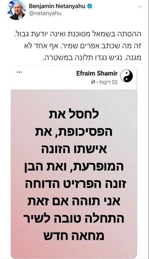 אפריים שמיר צריך להרקב בכלא חלאההה תלך אלף כפרות על ביבי מעניין מה העונש שיקבל מי מאיים ככה על ראש ממשלה מהמוות להבדיל של רבין עשיתם סיפור וגם זה לא יגאל אמיר לא בטוח ????עוכריי ישראל מקומכם...