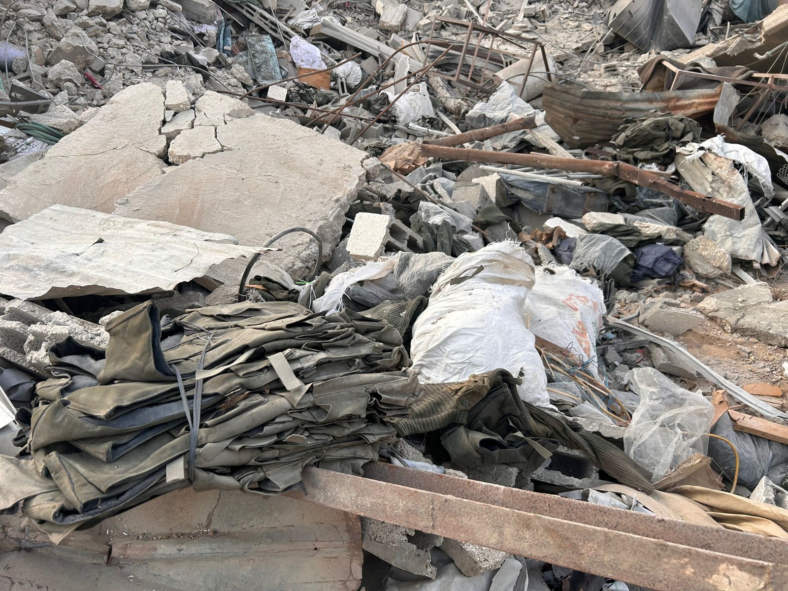ציוד צבאי בשקי אונר"א (צילום: דובר צה"ל)