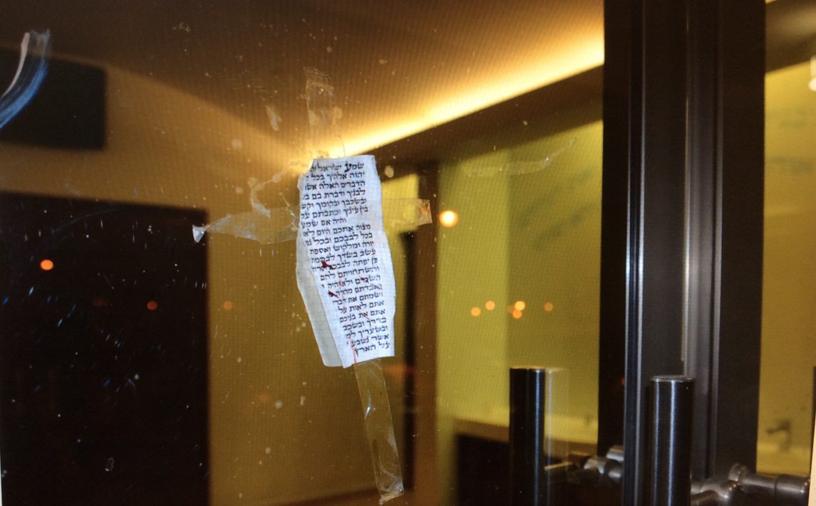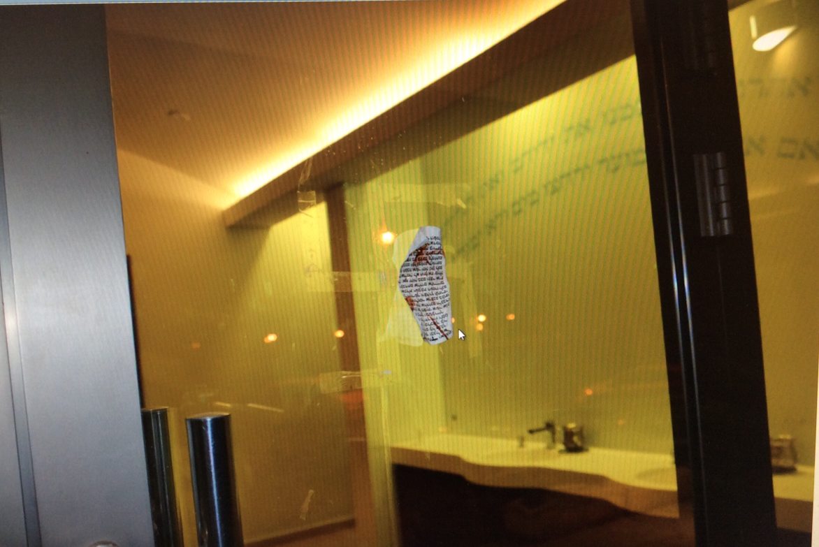 בשבוע שעבר התקבלה בתחנת המשטרה בכפר סבא תלונה מגבאי בית הכנסת "אחוות רעים" ברעננה (רח' הסייפן) כי מצא קלפים קרועים של מזוזה מגואלים בדם מודבקים על דלתות בית הכנסת. המזוזות הודבקו בנייר דבק בצורת צלב נוצרי וצלב קרס.