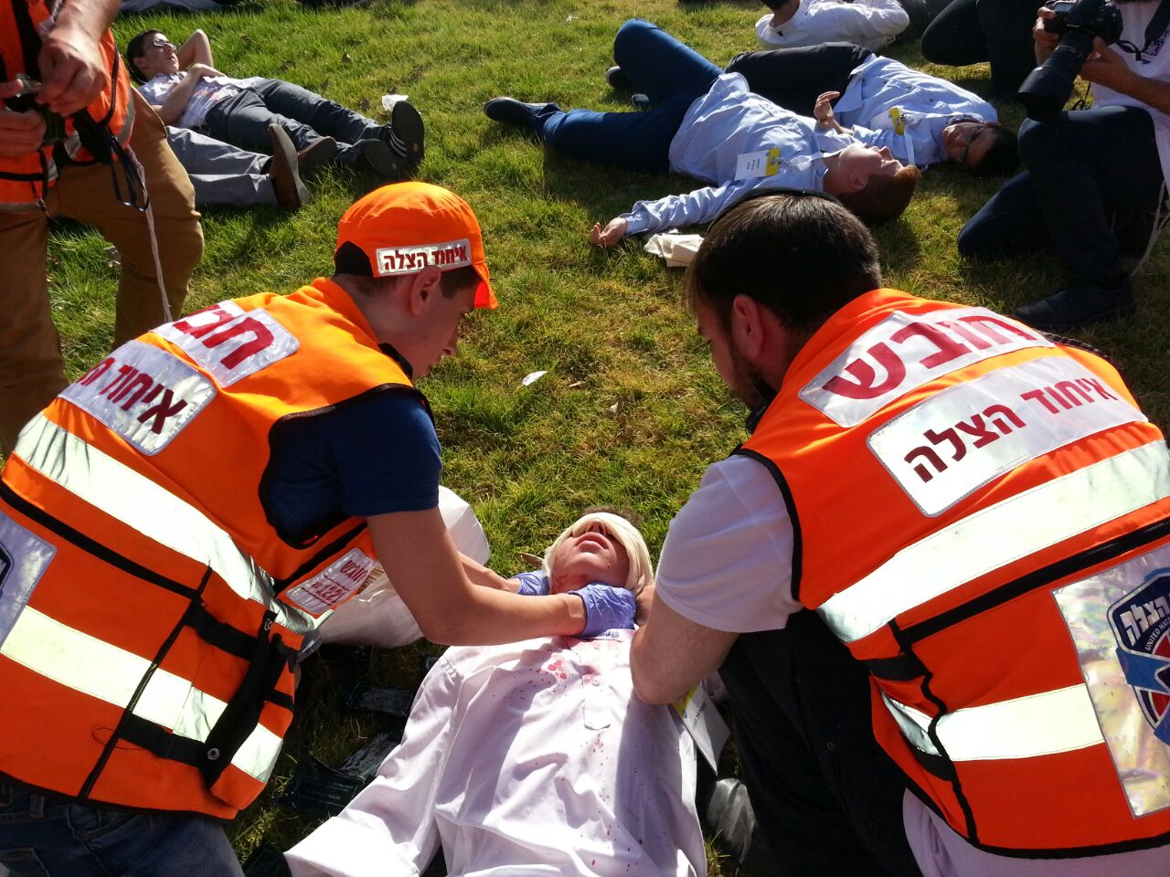 בתרגיל משתתפים: עשרות רופאים, פרמדיקים וחובשים של 'איחוד הצלה' שמתרגלים הגשת עזרה ראשונה לנפגעים וחילוץ לכודים, לצד עשרות מתנדבי זק"א שמטפלים בגופות ההרוגים המדומים ופתחו 'תחנת איסוף חללים'.