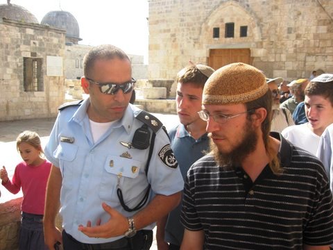 הרב ישראל אריאל בשיחה עם תלמידים בהר הבית (הר הבית)