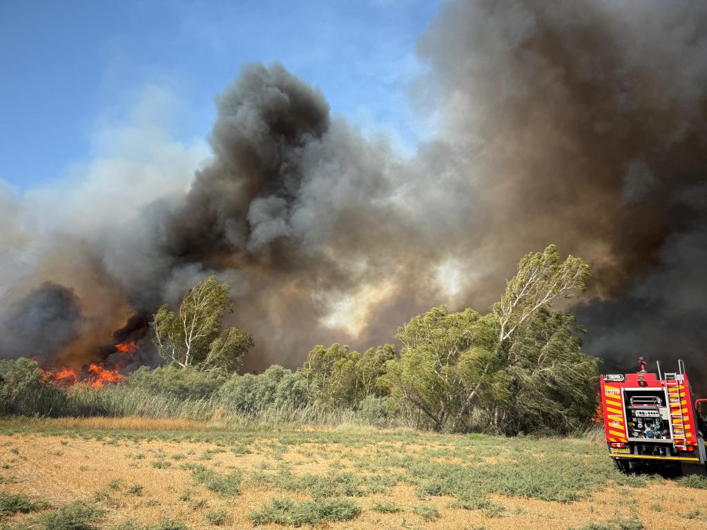 לוחמי האש פועלים במספר מוקדי שריפה על מנת לבלום את התפשטות השריפה בתוואי שטח מאתגר ובעומס חום משמעותי.