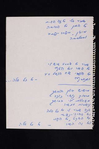 המשך מילות השיר "על כל אלה" בכתב ידה המקורי של נעמי שמר. (צילום: אורי ברקת, הספריה הלאומית)