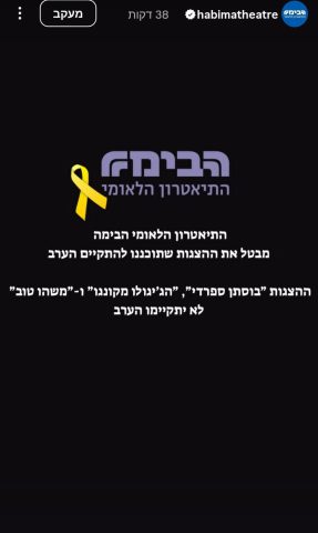 ההצגות שתוכננו לעלות הערב בתיאטרון הבימה והתבטלו הן "בוסתן ספרדי", "הג'יגלו מקונגו", ו-"משהו טוב".