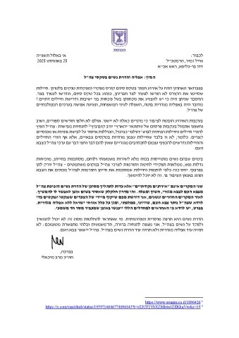 בעקבות הפרסום, פנתה יו"ר מפלגת העבודה, ח"כ מרב מיכאלי, לשר הביטחון ולרמטכ"ל בדרישה חד-משמעית להפסיק את הדרת נשים בצה"ל. במכתבה כתבה מיכאלי כי מדובר ב"אפליה מגדרית בוטה, השפלה לעיני המשפחות, ופגיעה אנושה בערכים הממלכתיים של צה"ל". עוד דרשה מהממונים שיקוף מידי של הצעדים שננקטים למניעת הישנות מקרים כאלה, והבהירה: "מי שאחראי להחלטות מסוג זה לא יכול להמשיך ולפקד על נשים בצה"ל".