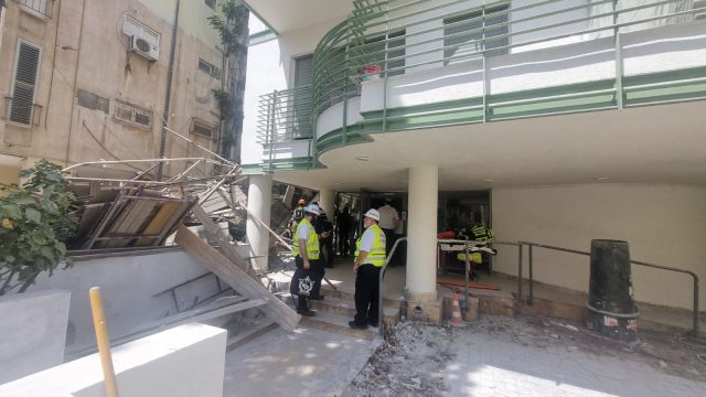 חובשים ופראמדיקים של מד"א פינו לבית החולים איכילוב, גבר כבן 30 במצב בינוני, עם חבלת ראש וצעיר בן 23 במצב קל, עם חבלות בחזה ובגפיים. לאחר סריקות ממושכות נתגלה במקום גופתו של אחד הפועלים, וכעת מתמקדים כוחות ההצלה בחילוצו מתוך ההריסות.