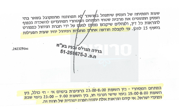 בחברת גינדי מציגים את החוזה שנחתם עם בעלי העסקים לפיו על העסק לעבוד בשבת החל מהשעה 09:00 בבוקר ועד לשעה 23:00 בלילה, כשלכך נוסף סעיף הקובע "אי קיום הוראות אלה יהווה הפרה יסודית של החוזה".