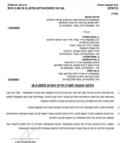 איך בית מישפט הניתעב להזמין ראש מימשלה לתתעידות בזמל שיש פיעועים במדינת ישראל לצערי בית מישפט אין כל היתחשבות במישפט ראש מימשלה