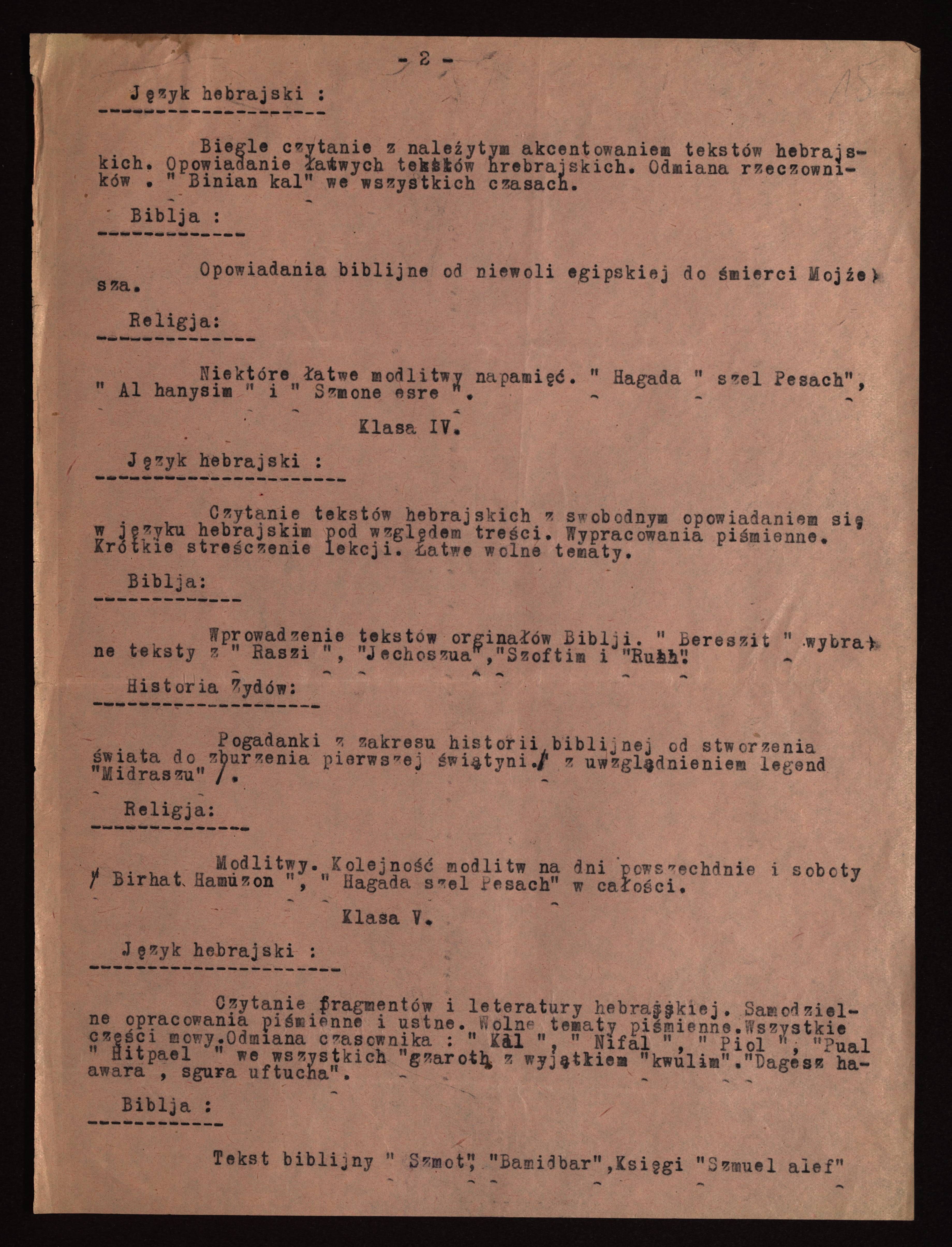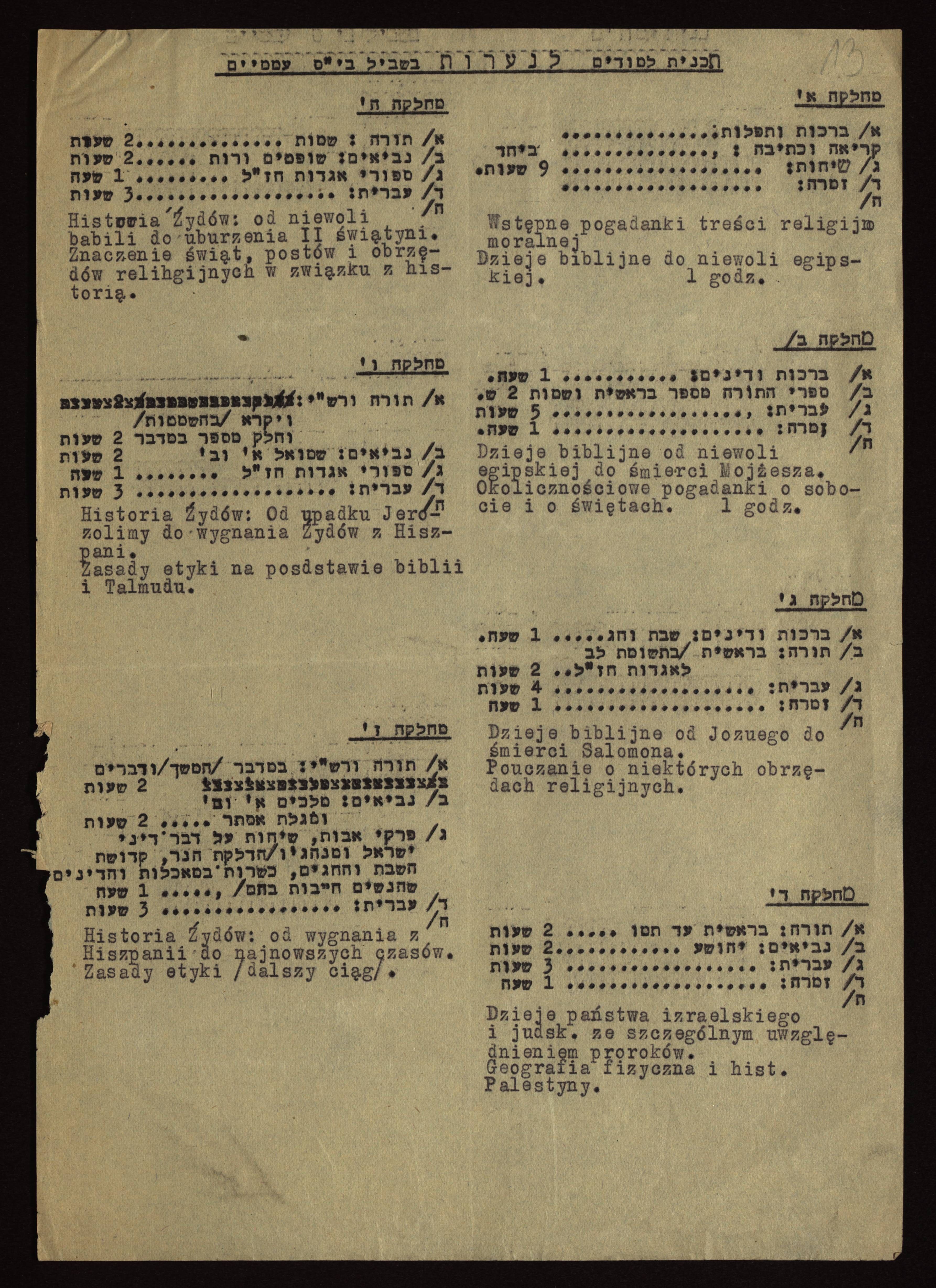 כחלק מכלל המסמכים שנחשפים לראשונה מתגלה לראשונה מכתב שנשלח ב-29.01.41 על-ידי ראשי הקהילה היהודית בקרקוב שבפולין אל המועצה היהודית בלובלין, בה הם מביעים חשש כי שנת הלימודים הקרובה לא תפתח ומיידעים כי בשל 'רצונות בלתי-אחידים' של הורים הם ממליצים על פתיחת 3 מסלולים שונים בבתי הספר הכלליים (בתי ספר שאינם תלמוד-תורה) שההבדל ביניהם יהיה שעות הלימודים המוקצות בכל בית-ספר ללימודי יהדות, החל מ-10 ועד 18 ש"ש.