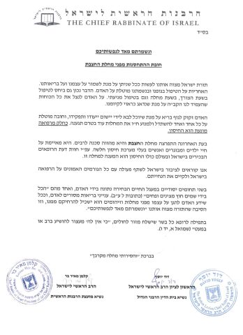 מצורף בזאת מכתבם של הרבנים הראשיים לישראל: