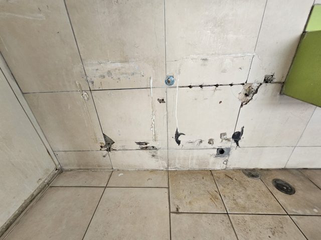 קרמיקות וכיורים שבורים בבית הספר בטלמון. (צילום: ללא קרדיט)