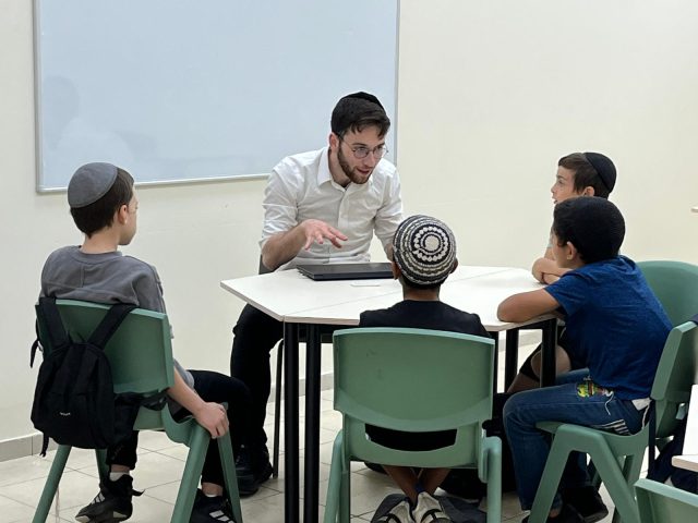 בית הספר החדש למחוננים ביד בנימין. ילדים סרוגים וחרדים בכיתה אחת. (צילום: המועצה האזורית נחל שורק)