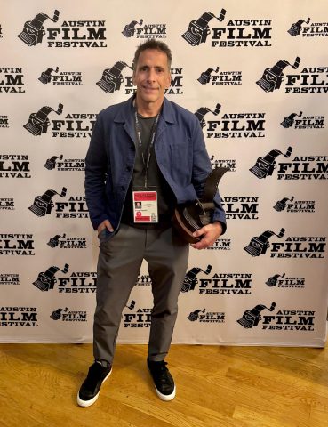 יובל הדדי עם הפרס בפסטיבל אוסטין. (צילום: מרק מוסקוביץ')
