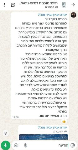 יהודה אבידן, בהודעה שנשלחה בווטסאפ של כלל ראשי המועצות הדתיות כותב הבוקר: