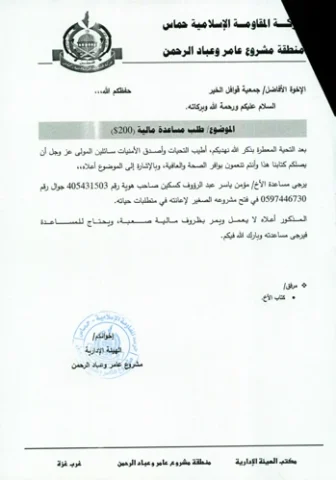 המסמכים פנימיים של ארגון הטרור, שנמצאו ואובחנו על ידי אמ"ן, ומתפרסמים היום לראשונה. הם חושפים כיצד משתמש ארגון הטרור בכספי האגודה הפלסטינית 'קואפל אלח'יר' – למימון פעילות הזרוע הצבאית. מהדוחות עולה כי כספי תרומות שיועדו למטרות צדקה ושיקום אזרחי, הועברו לחמאס לצורך התחזקות גדודי עז א-דין אל-קסאע, הזרוע הצבאית של הארגון להכשרות וסיוע כלכלי למחבלים.