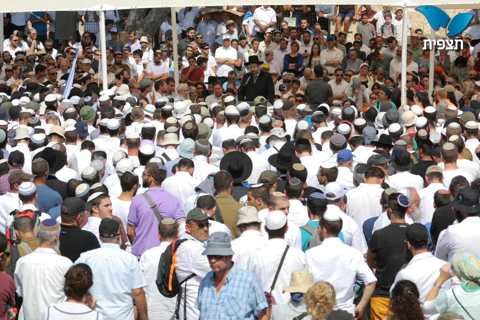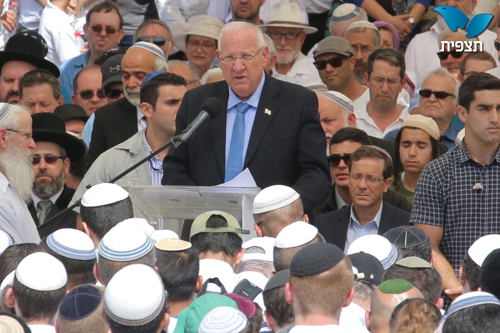 באשר למתרחש בירושלים אמר הנשיא: "אנו נמצאים במאבק קשה, יומיומי ומתמשך. כאבי בניין הארץ ובניין ירושלים,כאבי הגדילה, היו והם עדיין – כאבים עזים. לעתים, כמו היום, אלו כאבי תופת של ממש. גדלתי בירושלים, בזמן שנאסר עלינו בכוח הזרוע, להגיע אל הכותל המערבי ואף הייתי ילד, בימים שבהם תקיעת שופר ברחבת הכותל הייתה עילה למעצר בידי המנדט הבריטי. הימים האלה לא ישובו. אסור לנו, בשום פנים ואופן להירתע מלהגיע לכותל המערבי, שריד בית מקדשנו. זכיתי בעצמי השנה, להגיע לכותל, במעמד הקהל – בנוכחות המוני בית ישראל. אני קורא, לכל העולים לרגל: אל תדירו רגליכם מהעיר העתיקה. עלינו לצעוד בדרכם, של הרב נחמיה ושל אהרן, ולהוכיח במעשים, שהטרור לא יצליח לפגוע באורחות חיינו".