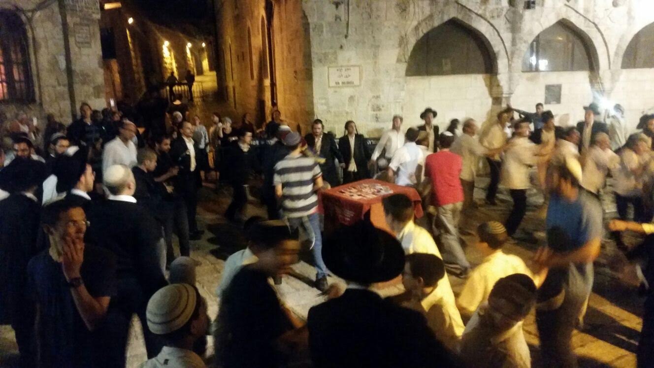 תלמידי ישיבת 'עטרת כהנים', בעיר העתיקה בירושלים וחסידי ברסלב מישיבת 'שובו בנים' ערכו הערב 'הקפות שניות' ברחוב הגיא ברחבת ההוספיס בסמוך למיקום בו אירע פיגוע הדקירה בו נרצחו הרב נחמיה לביא הי"ד ואהרון בנט הי"ד.