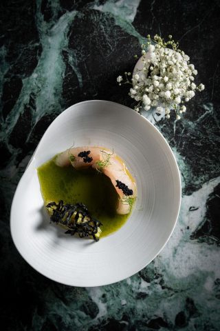 השף דור בנימין בנה ארוחת טעימות בת עשר מנות שמשלבת טכניקות עם חומרי גלם ארץ־ישראליים: דגה טרייה, ירקות עונתיים, ושמן הזית של משק אחיה שבהרי בנימין – מזן פיקואל, והוא מוטיב מרכזי במסעדה ולכל אורך הארוחה. הפיקואל מתאפיין בארומה עשירה, מעט פירותית עם מרירות וחריפות מאוזנת שמעניקה למנות רובד נוסף ומעניין. מעבר לזה, הוא נחשב לזן איכותי בעולם ומכאן השילוב שלו במסעדה הוא טבעי.