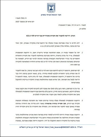 ח”כ בוארון מסכם: "אם המשטרה לא תבטל את ההחלטות ותפקיר את החקירה בידיים שאינן מוסמכות — אפנה לבג״ץ כבר בימים הקרובים".