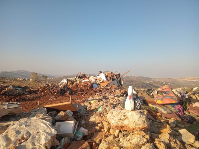 כוחות גדולים של משטרה והמנהל האזרחי הרסו לפנות בוקר (חמישי) מבנים בגבעת מבשר שלום שבשומרון ופינו מהם שתי משפחות המתגוררות במקום. הגבעה שוכנת סמוך לאביתר, ובשבועות האחרונים עלו באזור מתיחויות סביב אירועים ביטחוניים ועימותים בשטח.
