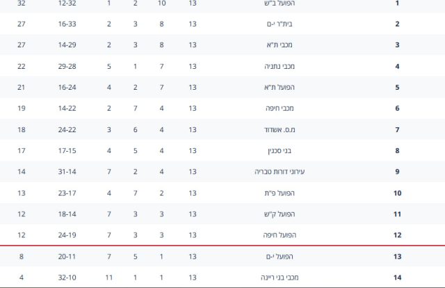 מנגד הפועל ירושלים, פספסה הזדמנות לניצחון שני העונה דווקא מול היריבה המושבעת. האדומים שחורים עם שמונה נקודות בלבד, שמורכבות מחמש תוצאות תיקו וניצחון אחד. הם נמצאים מתחת לקו האדום של ליגת העל. מרחק של ארבע נקודות מחוף מבטחים.