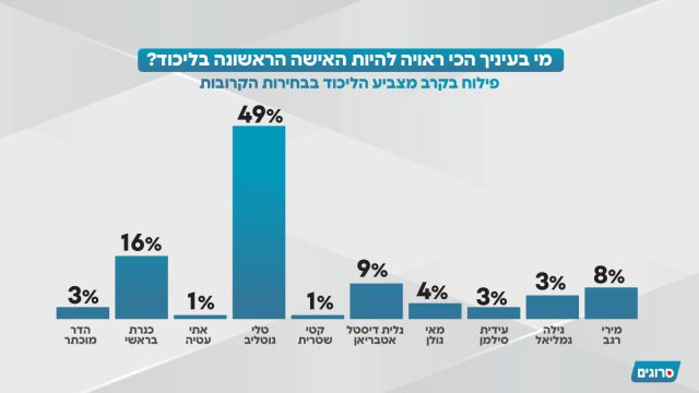 האישה הראשונה בליכוד: טלי גוטליב מובילה בפער