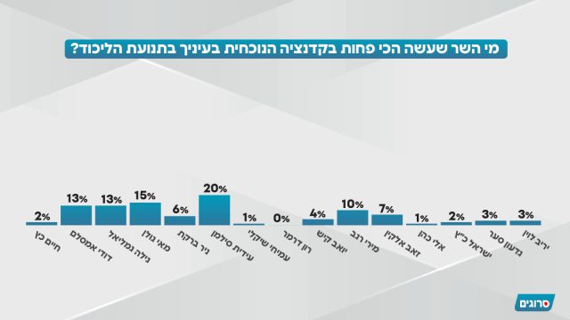 הסקר ביקש לבדוק מיהו השר בליכוד שעשה הכי הרבה בקדנציה הנוכחית בעיני הציבור הסרוג.